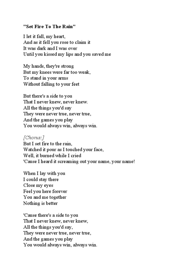 Adele Set Fire To The Rain - Dapatkan lirik lagu lain oleh free di kapanlagi.com.